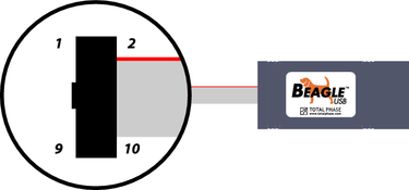 It is imperative that the Beagle analyzer's ground lead is connected to the ground of the target system. Without a common ground between the two, the signaling will be unpredictable and communication will likely be corrupted. Two ground pins are provided to ensure a secure ground path.